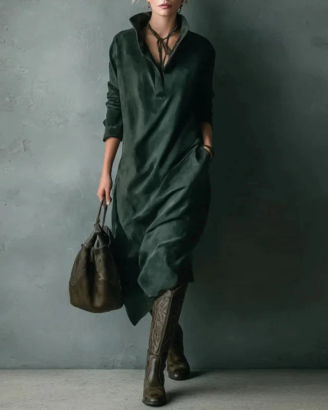Drappeggi morbidi e senza sforzo si incontrano con un'eleganza sobria in questo abito lungo e rilassato, progettato con una texture fluida ispirata al camoscio, un colletto delicatamente strutturato e una silhouette facile e traspirante che si muove con una quieta sicurezza. L'Abito Drappeggiato Darcy™ fonde il minimalismo moderno con un accenno di fascino rustico, creando un look che si sente raffinato, comodo e splendidamente indossabile dal giorno alla notte.